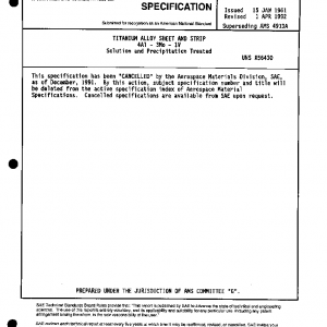 This specification has been “CANCELLED” by the Aerospace Materials Division, SAE, as of December, 1991.