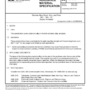 This specification covers a titanium alloy in the form of sheet, strip, and plate.