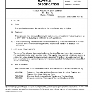 This specification covers a titanium alloy in the form of sheet, strip, and plate.