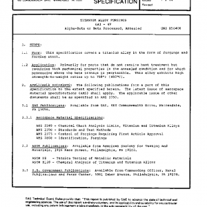 TITANIUM ALLOY FORGINGS 6Al – 4V Alpha-Beta or Beta Processed, Annealed