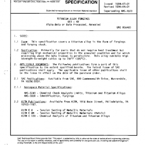 TITANIUM ALLOY FORGINGS 6Al – 4V Alpha-Beta or Beta Processed, Annealed