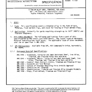 This specification covers a titanium alloy in the form of bars, forgings, flash welded rings, and stock for forging or flash welded rings.