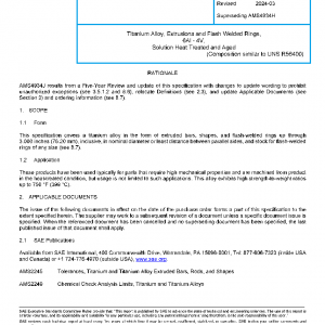 Titanium Alloy, Extrusions and Flash Welded Rings, 6Al – 4V, Solution Heat Treated and Aged