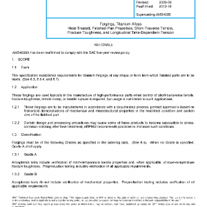 This specification establishes requirements for titanium forgings of any shape or form from which finished parts are to be made. (See 8.3, 8.5.4, and 8.7).