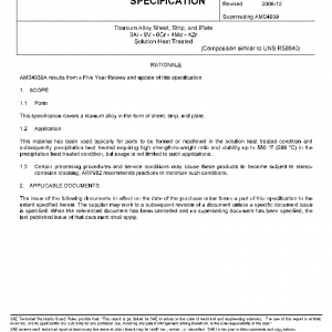 Titanium Alloy Sheet, Strip, and Plate 3Al – 8V – 6Cr – 4Mo – 4Zr Solution Heat Treated
