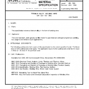 TITANIUM ALLOY, WELDING WIRE 6AI – 2Sn – 4Zr – 2Mo