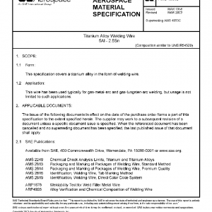 This specification covers a titanium alloy in the form of welding wire.