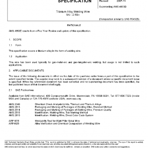 This specification covers a titanium alloy in the form of welding wire.