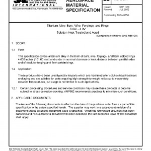 Titanium Alloy, Bars, Wire, Forgings, and Rings 6.0Al – 4.0V Solution Heat Treated and Aged