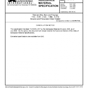 Titanium Alloy, Bars and Forgings, 11sn 5.0zr 2.3al 1.0mo 0.21si, Solution and Precipitation Heat Treated(Cancelled Jul 2002)
