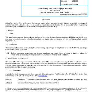 Titanium Alloy, Bars, Wire, Forgings, and Rings 6Al – 6V – 2Sn Solution and Precipitation Heat Treated