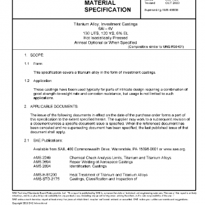 This specification covers a titanium alloy in the form of investment castings.