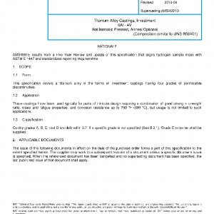 Titanium Alloy Castings, Investment 6Al – 4V Hot Isostatic Pressed, Anneal Optional