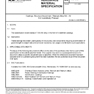 Castings, Structural Investment, Titanium Alloy 6Al – 4V Hot Isostatically Pressed