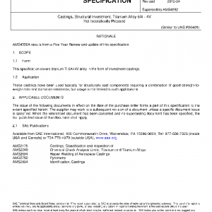 Castings, Structural Investment, Titanium Alloy 6Al – 4V Hot Isostatically Pressed