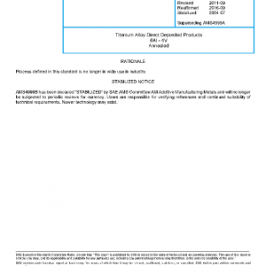 Titanium Alloy Direct Deposited Products 6Al – 4V Annealed(STABILIZED Jul 2024)