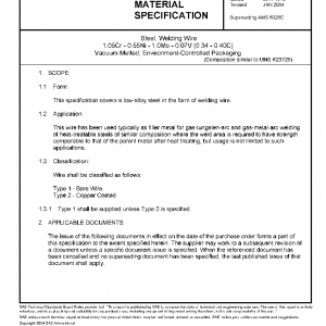 Steel, Welding Wire 1.05Cr – 0.55Ni – 1.0Mo – 0.07V (0.34 – 0.40C) Vacuum Melted, Environment-Controlled Packaging