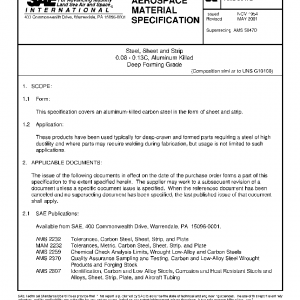Steel, Sheet and Strip 0.08 – 0.13C, Aluminum Killed Deep Forming Grade