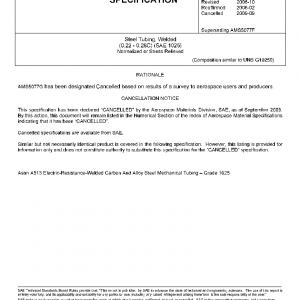 Steel Tubing, Welded, (0.22 – 0.28C) (SAE 1025), Normalized or Stress Relieved(Cancelled Sep 2009)