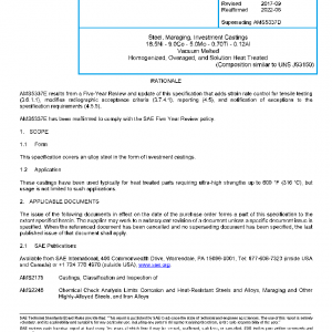 Steel, Maraging, Investment Castings 18.5Ni – 9.0Co – 5.0Mo – 0.70Ti – 0.12Al Vacuum Melted Homogenized, Overaged, and Solution Heat Treated