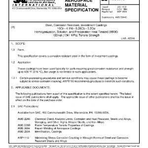Steel, Corrosion Resistant, Investment Castings 16Cr – 4.1Ni – 0.28Cb – 3.2Cu Homogenization, Solution, and Precipitation Heat Treated (H900) 180 ksi (1241 MPa) Tensile Strength