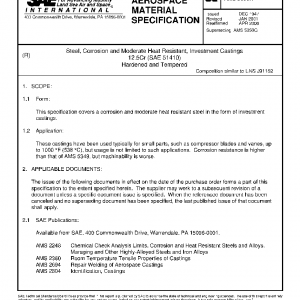 Steel, Corrosion and Moderate Heat Resistant, Investment Castings 12.5Cr (SAE 51410) Hardened and Tempered