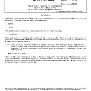 Steel, Corrosion-Resistant, Investment Castings 15Cr – 4.6Ni – 0.22Cb – 2.8Cu Solution Heat Treated, Precipitation Hardenable