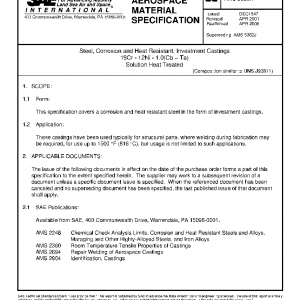 Steel, Corrosion and Heat Resistant, Investment Castings 19Cr – 12Ni – 1.0(Cb + Ta) Solution Heat Treated