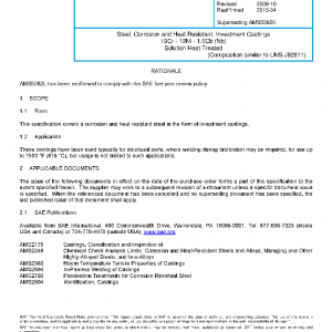 Steel, Corrosion and Heat Resistant, Investment Castings 19Cr – 12Ni – 1.0Cb (Nb) Solution Heat Treated
