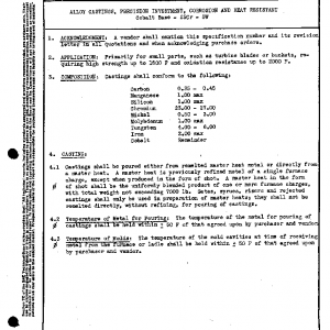 ALLOY CASTINGS, PRECISION INVESTMENT, CORROSION AND HEAT RESISTANT Cobalt Base – 25Cr – 5W