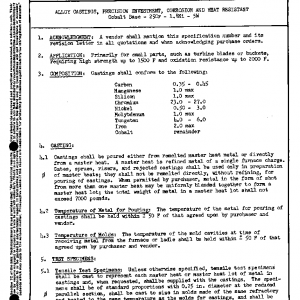 ALLOY CASTINGS, PRECISION INVESTMENT, CORROSION AND HEAT RESISTANT Cobalt Base – 25Cr – 1.8Ni – 5W