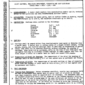 ALLOY CASTINGS, PRECISION INVESTMENT, CORROSION AND HEAT RESISTANT Cobalt Base – 26Cr – 15Ni – 6Mo