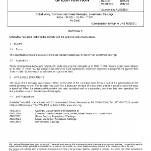 This specification covers a corrosion and heat-resistant cobalt alloy in the form of investment castings.