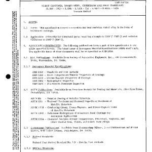 This specification covers a corrosion and heat resistant nickel alloy in the form of investment castings.
