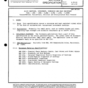 This specification covers a corrosion and heat resistant nickel alloy in the form of vacuum-melted, vacuum-cast investment castings.