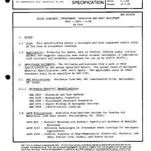 This specification covers a corrosion and heat resistant cobalt alloy in the form of investment castings.