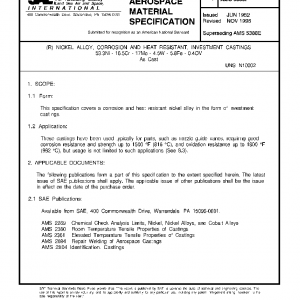 This specification covers a corrosion and heat resistant nickel alloy in the form of investment castings.