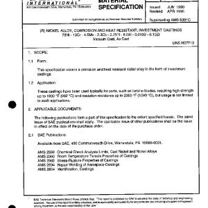 This specification covers a corrosion and heat resistant nickel alloy in the form of investment castings.