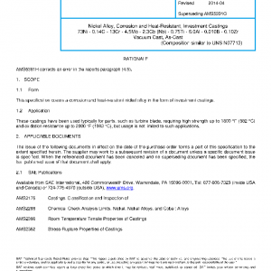 This specification covers a corrosion and heat-resistant nickel alloy in the form of investment castings.