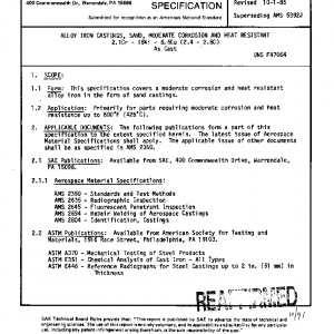 This specification covers a moderate corrosion and heat resistant alloy iron in the form of sand castings.