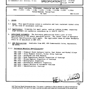This specification covers a corrosion and heat resistant nickel alloy in the form of investment castings.