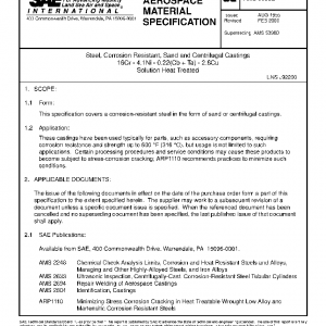 Steel, Corrosion Resistant, Sand and Centrifugal Castings 16Cr – 4.1Ni – 0.22(Cb + Ta) – 2.8Cu Solution Heat Treated