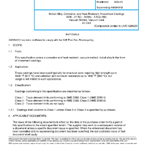 This specification covers a corrosion and heat-resistant, vacuum melted, nickel alloy in the form of investment castings.