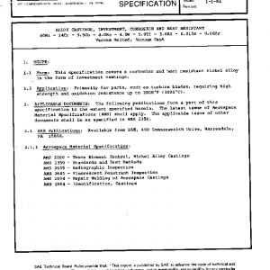 This specification covers a corrosion and heat resistant nickel alloy in the form of investment castings.