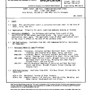 SHEET, STRIP, AND FOIL, CORROSION RESISTANT STEEL 19Cr – 9.5Ni (SAE 30304) Cold Rolled, 125,000 psi (862 MPa) Tensile Strength