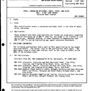 STEEL, CORROSION RESISTANT, SHEET, STRIP, AND PLATE 19Cr – 9.2Ni (SAE 30304) Solution Heat Treated