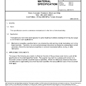 Steel, Corrosion Resistant, Sheet and Strip 18Cr – 8Ni (SAE 30301) Cold Rolled, 125 ksi (862 MPa) Tensile Strength