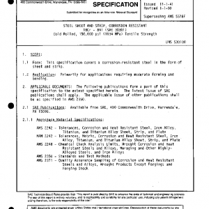 STEEL SHEET AND STRIP, CORROSION RESISTANT 18Cr – 8Ni (SAE 30301) Cold Rolled, 150,000 psi (1034 MPa) Tensile Strength