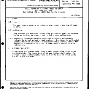 STEEL, CORROSION RESISTANT, SHEET AND STRIP 18Cr – 8Ni (SAE 30301) Cold Rolled, 150 ksi (1034 MPa) Tensile Strength