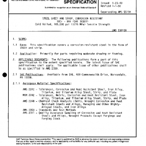 STEEL SHEET AND STRIP, CORROSION RESISTANT 18Cr – 8Ni (SAE 30301) Cold Rolled, 185,000 psi (1276 MPa) Tensile Strength